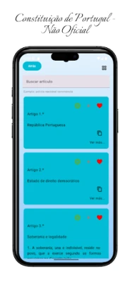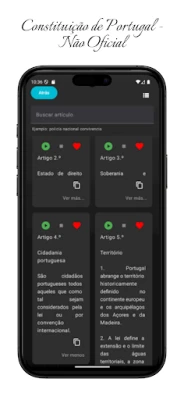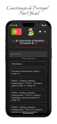 Consulte a Constituição de Portugal através desta aplicação não oficial. Projetada para fins educativos e de referência, utiliza documentos públicos da Assembleia da República. É uma ferramenta independente, sem qualquer afiliação governamental.