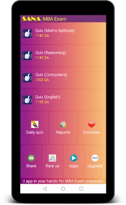 Prepare-se para o Exame de Admissão MBA com MBA Exam Prep da Sana Edutech. Este aplicativo único oferece mais de 4000 questões em Aptidão Quantitativa, Raciocínio Lógico, Inglês e Computadores. Revise respostas, faça simulados e compare seu desempenho para garantir o sucesso em seu M.B.A.