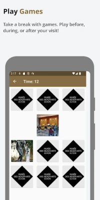 Planejar sua jornada nunca foi tão intuitivo. Crie seu próprio itinerário personalizado para o dia, selecionando as exposições e áreas que mais lhe interessam, garantindo que cada segundo da sua visita ao Museu de Belas Artes de Lyon seja otimizado de acordo com seus desejos. E para um toque de diversão e aprendizado interativo, desafie sua memória e conhecimento com um cativante jogo de correspondência, uma maneira lúdica de fixar o que aprendeu enquanto explora. Prepare-se para uma visita inesquecível, onde a arte encontra a tecnologia para criar memórias duradouras.