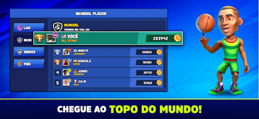 Sua jornada no basquete o levará por arenas e quadras que evoluem em tamanho e esplendor, crescendo junto com sua carreira. Participe de torneios emocionantes, onde cada fase eliminatória é um degrau para a glória de erguer um troféu. Seja em confrontos domésticos ou desafios internacionais, cada partida é uma nova aventura, oferecendo cenários e emoções distintas. E fique atento: novos ambientes e surpresas visuais estão sempre a caminho em futuras atualizações!