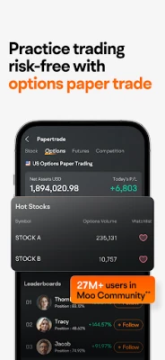 Moomoo oferece trading inteligente com comissão de $0 e sem taxas de contrato para residentes dos EUA. Desfrute de pesquisa premium, ferramentas de IA e uma interface intuitiva. Junte-se a milhões de usuários globais, aprimore seu conhecimento com papertrade e descubra uma negociação flexível e avançada.