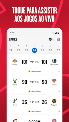 Mergulhe de cabeça no universo do basquete com o NBA App, seu portal definitivo para a National Basketball Association. Sinta a emoção de cada lance com acesso instantâneo a placares ao vivo, estatísticas detalhadas e a classificação atualizada de cada jogo. Mantenha-se à frente com as últimas notícias, destaques espetaculares e análises aprofundadas, tudo ao seu alcance. Explore séries originais exclusivas dos bastidores, como "Pass the Rock" e "Chasing History", e personalize seu feed para receber informações sobre seus times e jogadores favoritos. Com coletivas de imprensa pós-jogo ao vivo e uma variedade de games interativos como Full Court Guess e NBA IQ, o NBA App oferece uma experiência completa e gratuita para os verdadeiros fãs do esporte.