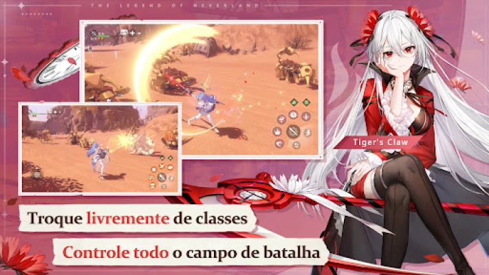 A sua jornada em The Legend of Neverland é moldada pela liberdade e pela ação. Crie um herói único, personalizando cada detalhe, desde o rosto até à indumentária, e adapte o seu estilo de combate com a flexibilidade de alternar entre classes distintas como Espadachim, Sentinela, Académico e Artesão. Nestas batalhas dinâmicas, não estará sozinho: recrute as encantadoras Fadas da Flor, como Margarida e Rosa Roxburghii, para amplificar o seu poder. Junte forças com outros aventureiros para conquistar masmorras desafiadoras, derrotar chefes colossais e, se ousar, ascender à glória máxima em duelos PvP que testam a sua perícia.