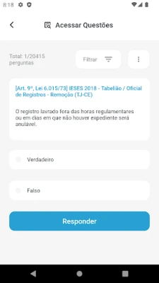 Com Decorando a Lei Seca, sua jornada de aprendizado é interativa e direcionada. Após acessar a plataforma, você seleciona o diploma legal de seu interesse para mergulhar em questões criteriosamente elaboradas. Cada pergunta aborda exatamente os artigos que já foram testados em exames anteriores, maximizando sua memorização do conteúdo essencial. Ao responder, o feedback é imediato e esclarecedor: acertos destacam o artigo correto em verde, enquanto os erros revelam a armadilha comum com grifos em vermelho, transformando cada equívoco em uma valiosa lição.